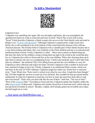 Download Calpurnia To Kill A Mockingbird - Characters - to Kill a