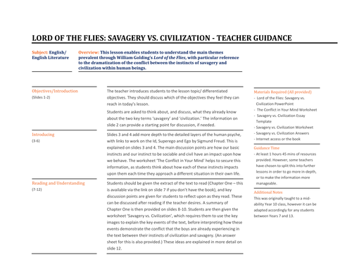 Download Lord of the Flies: Savagery vs. Civilization | Teaching Resources