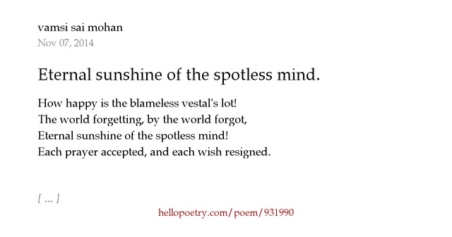 Download Eternal sunshine of the spotless mind. by vamsi sai mohan - Hello Poetry