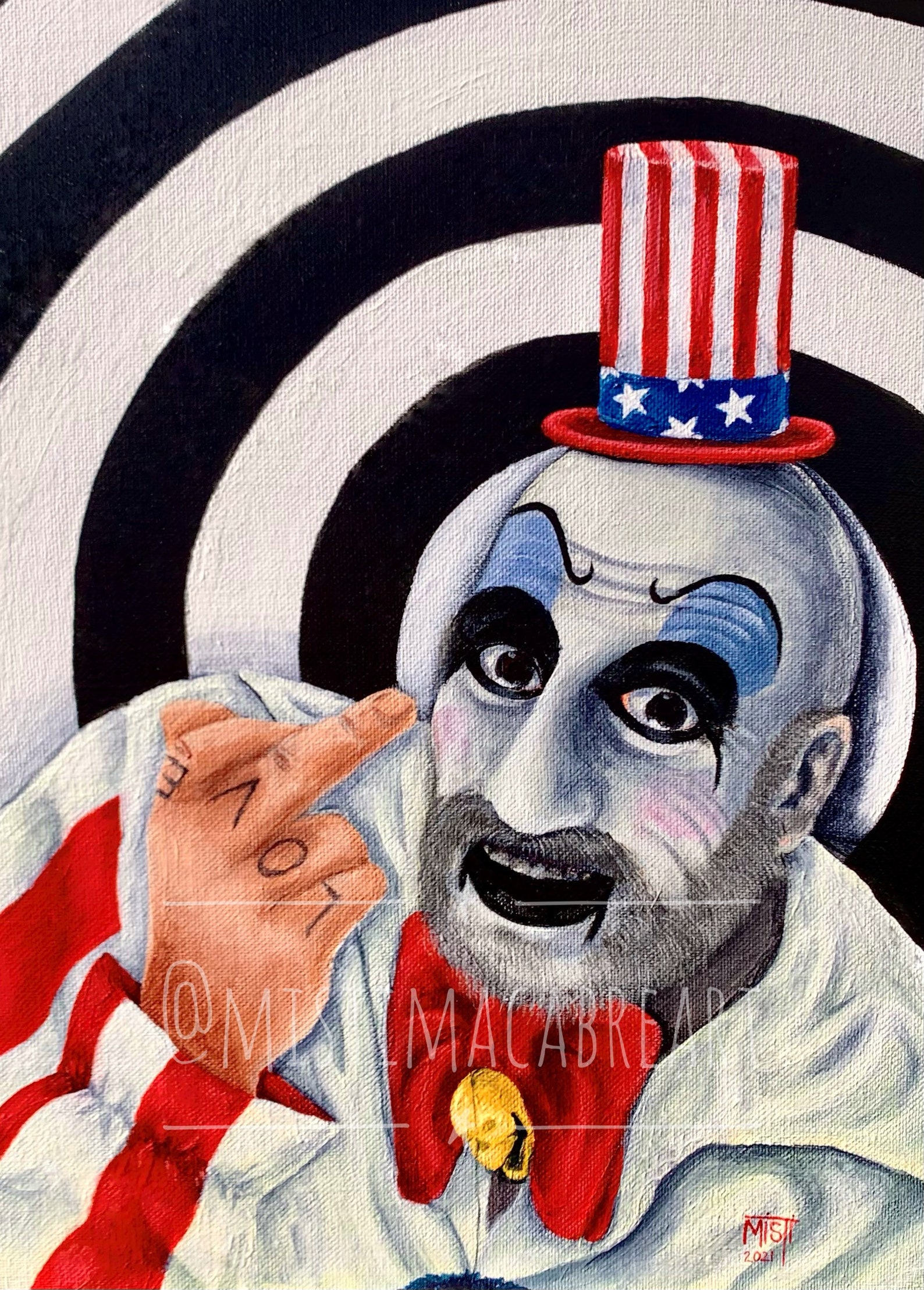 This image beautifully captures the essence of Captain Spaulding House of 1000 corpses version 2 hand painted. Whether you are interested in exploring this subject further, this is an outstanding representation right here, which is sure to inspire and inform. The colors, composition, and subject matter all come together to create a truly remarkable piece of art that you won’t want to overlook.