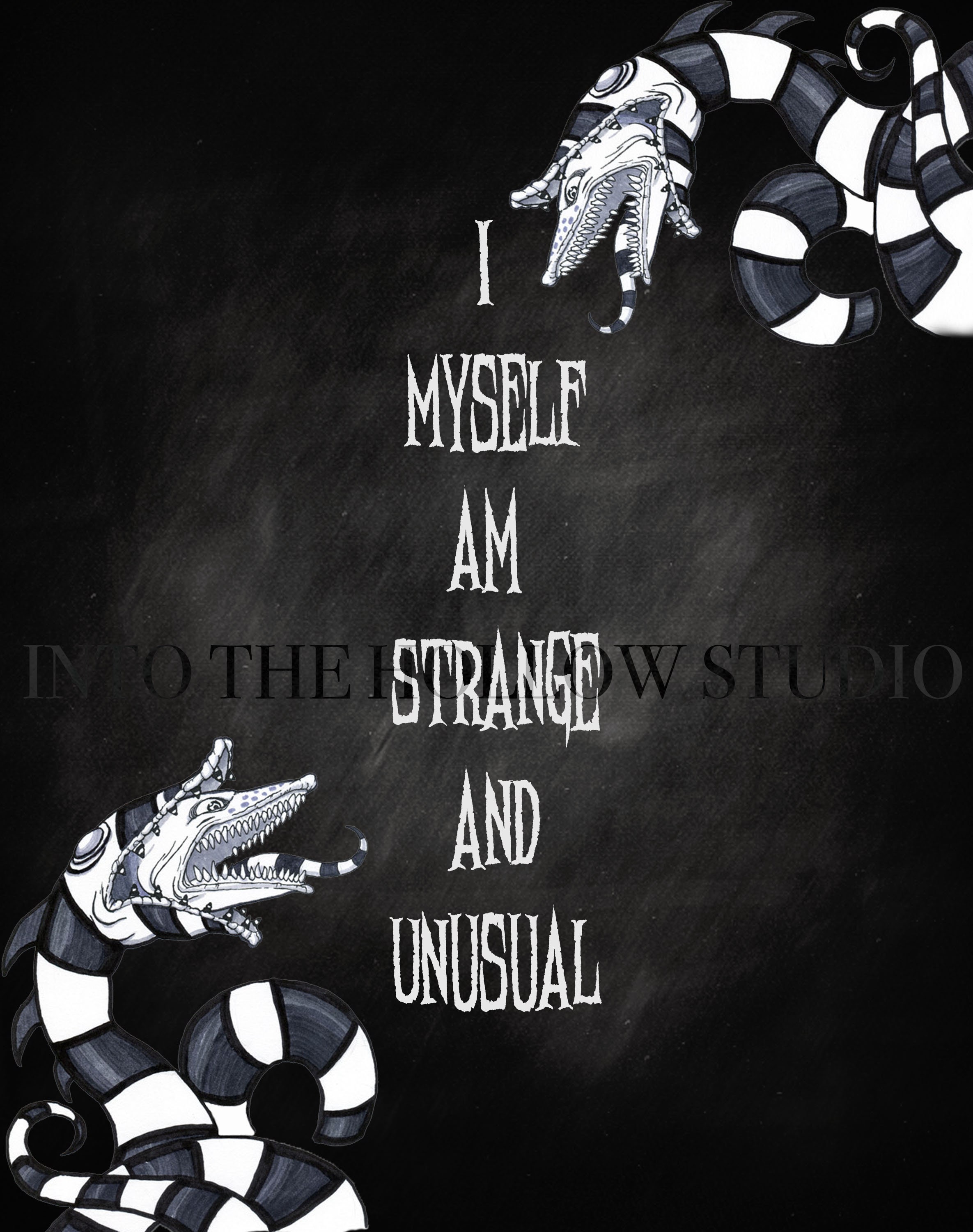 Download I Myself Am Strange And Unusual Beetlejuice Quote Sand Worm Snake Art