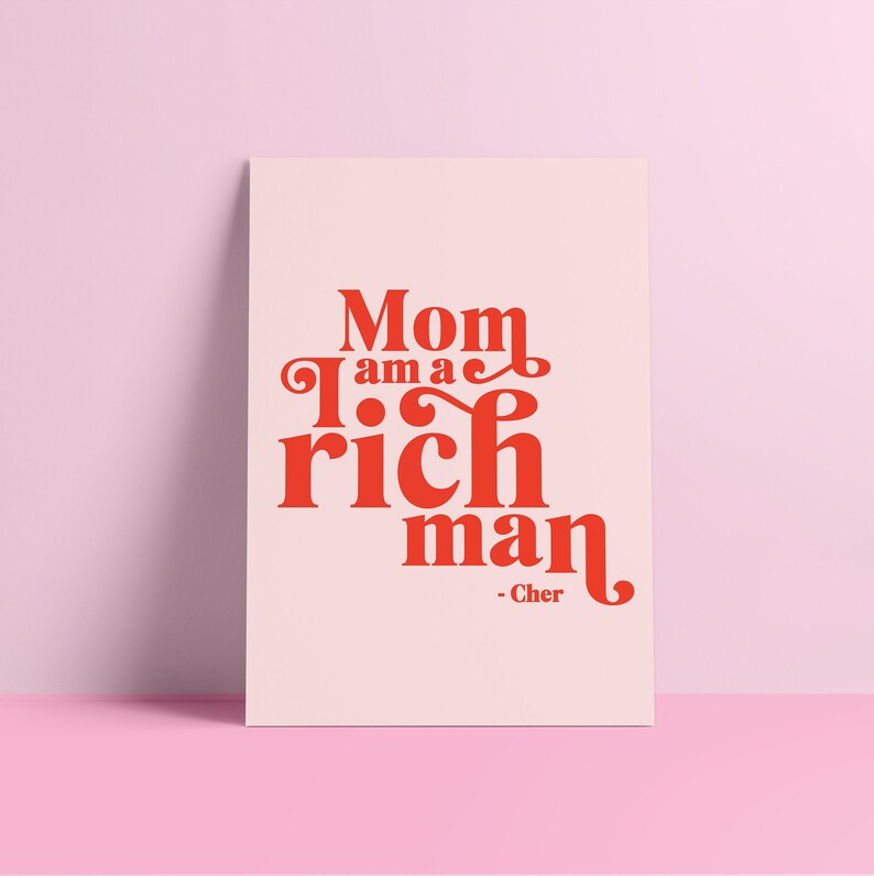 This picture beautifully captures the stunning features of Mom I am a Rich Man Cher Quote Quote Prints Feminist | Etsy. Whether you are keen on exploring this subject further, you can explore an outstanding representation right here, which is sure to inspire and inform. The colors, composition, and subject matter all come together to create a truly remarkable piece of art that you won’t want to overlook.