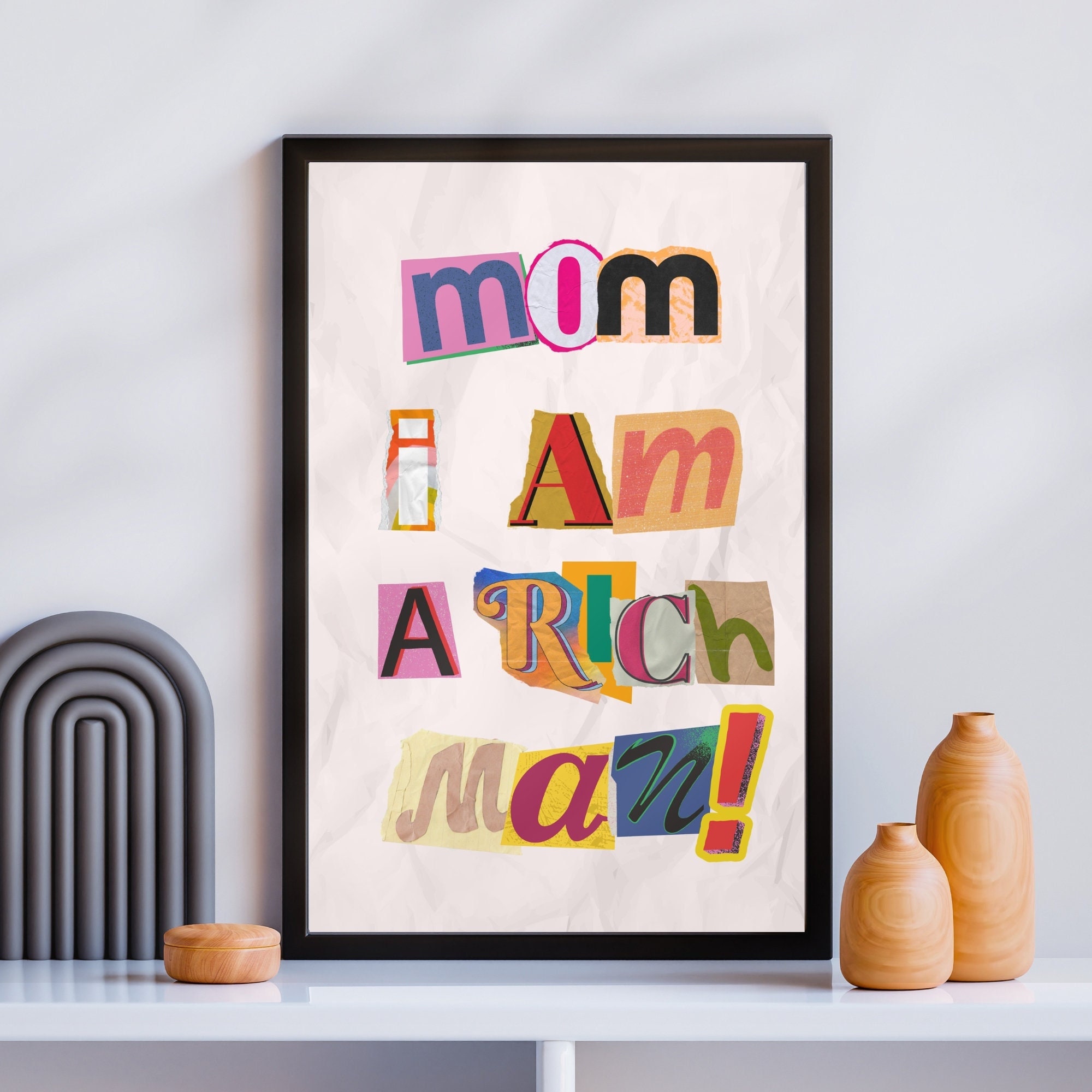 This picture beautifully captures the intricate details of Mom I Am a Rich Man Poster Magazine Letters Iconic Sayings Feminist. Whether you are fascinated by exploring this subject further, this is an outstanding representation right here, which is sure to inspire and inform. The colors, composition, and subject matter all come together to create a truly remarkable piece of art that you won’t want to overlook.