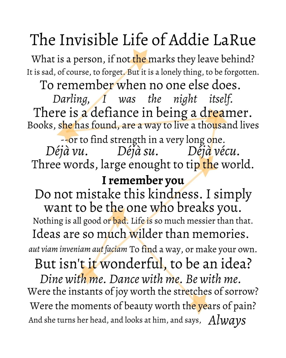 Download The Invisible Life of Addie Larue Book Quote Wall Art - Etsy