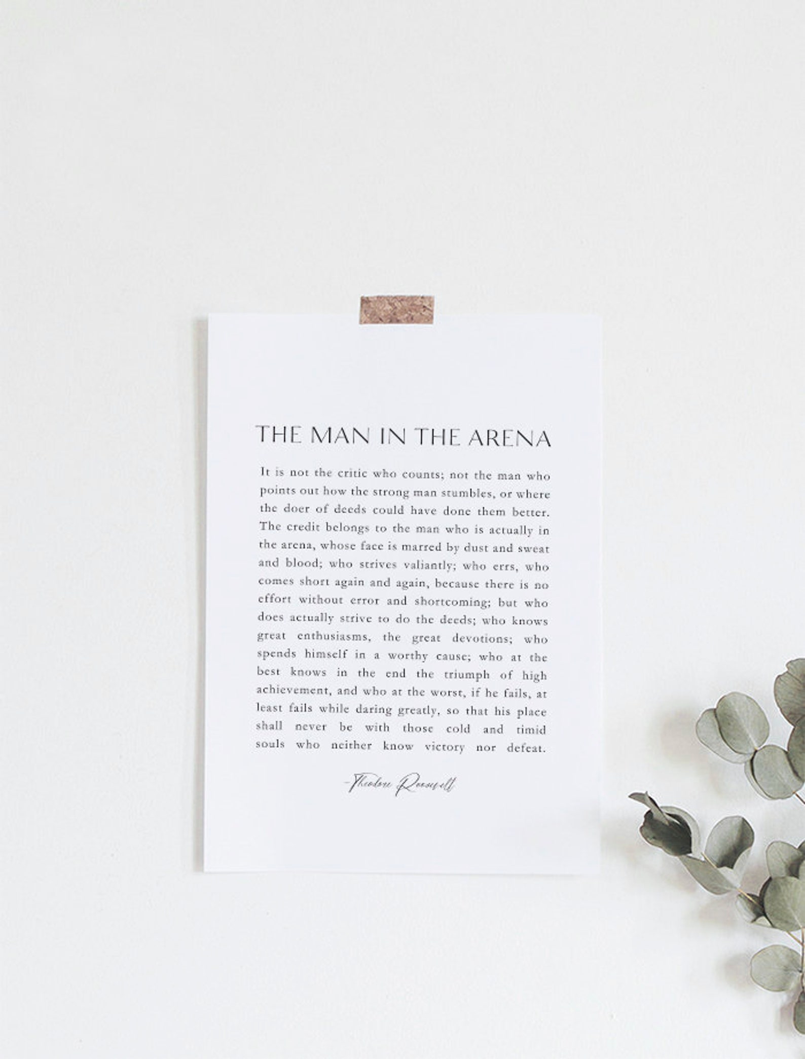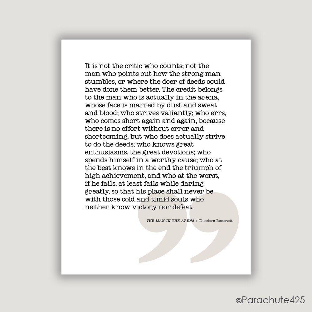 Download The Man in the Arena Quote Print Theodore Roosevelt Quotes - Etsy