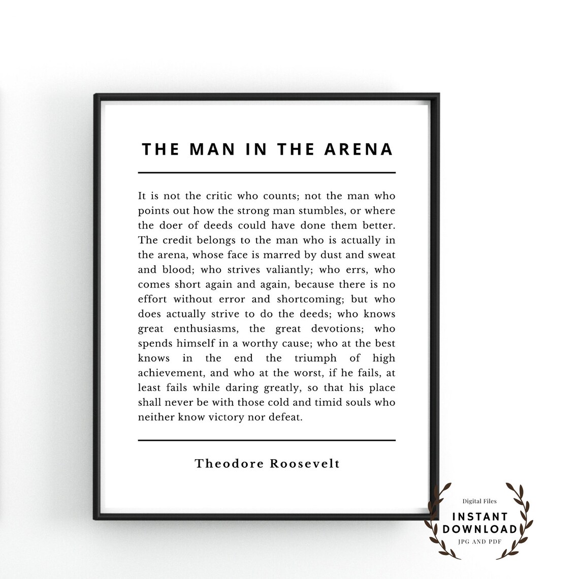 Download The Man In The Arena Quote Printable Wall Art Theodore | Etsy