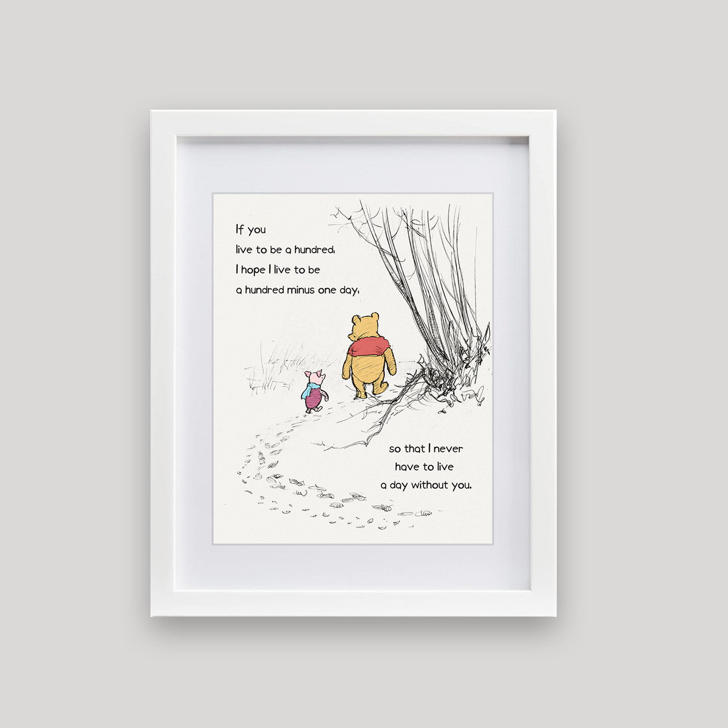 Download Winnie the Pooh Quote Print Poster, If You Live to Be 100 Piglet, A.A
