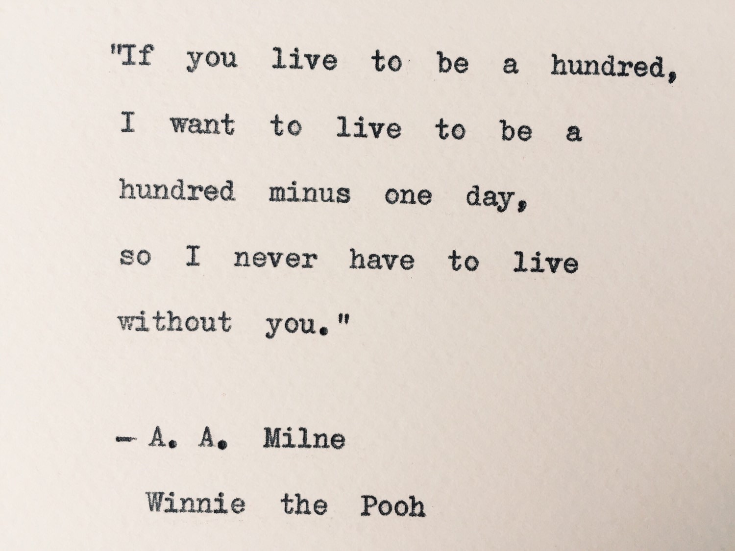 Download Live to be a hundred quote/ Winnie the Pooh Typewriter Quote/