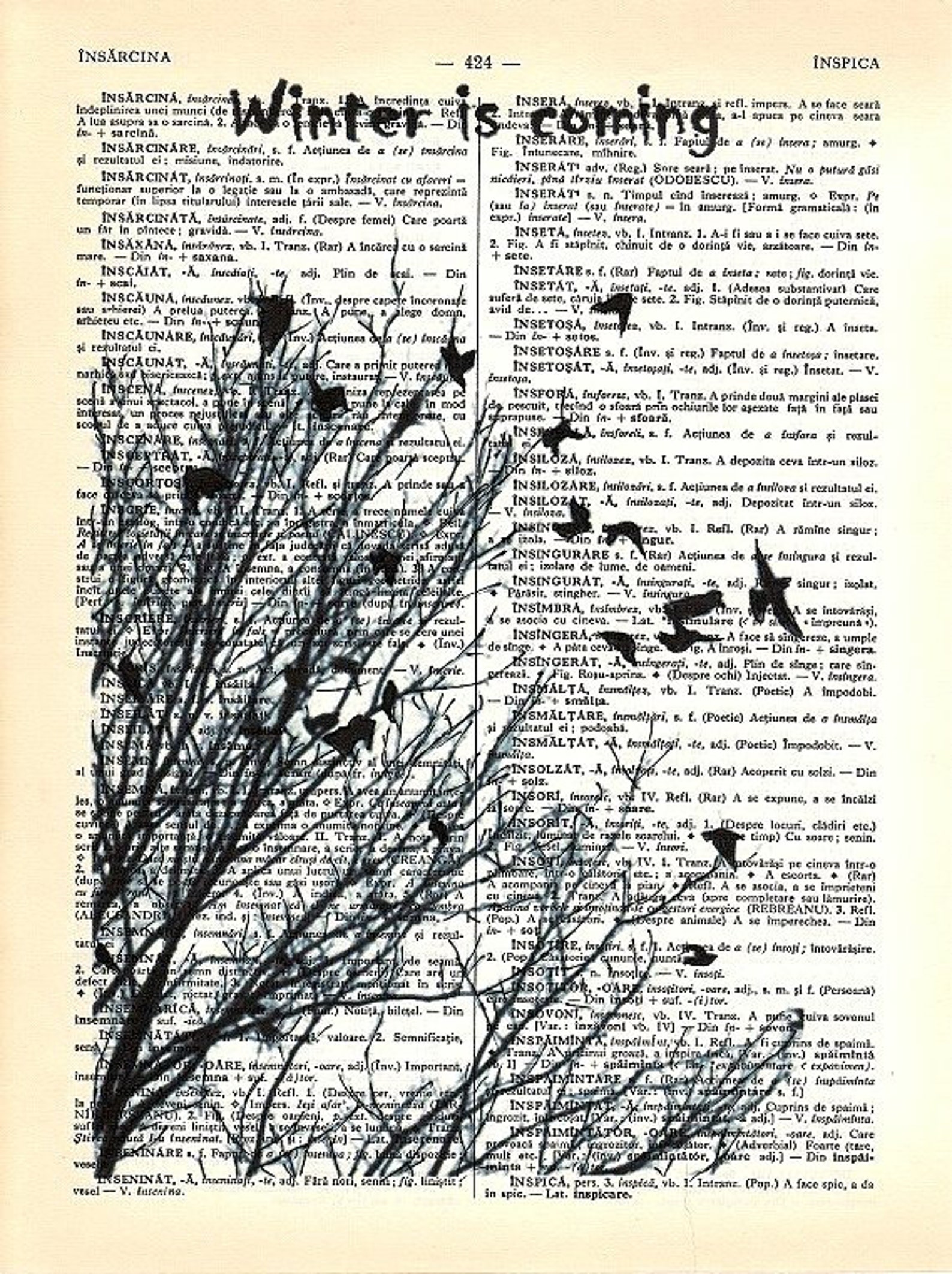 Download WINTER IS COMING game of Thrones Wall Art dictionary Art Upcycled Book